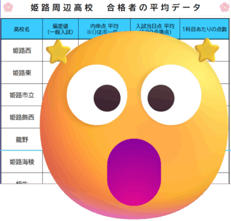 模試会社さんからいただいた各高校の合否データをもとに、ボーダーラインだけでなく、合格者の平均点も記載しています。